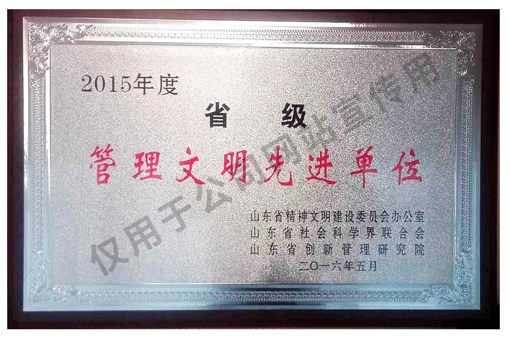 2016年 | 被山東省精神文明建設委員會辦公室等聯合授予“省級文明管理先進單位”; |