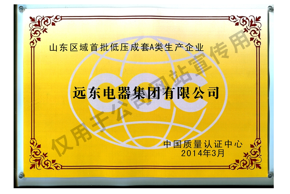 2014年 | 被中國質量認證中心授予“山東省首批低壓成套A類生產企業” |
