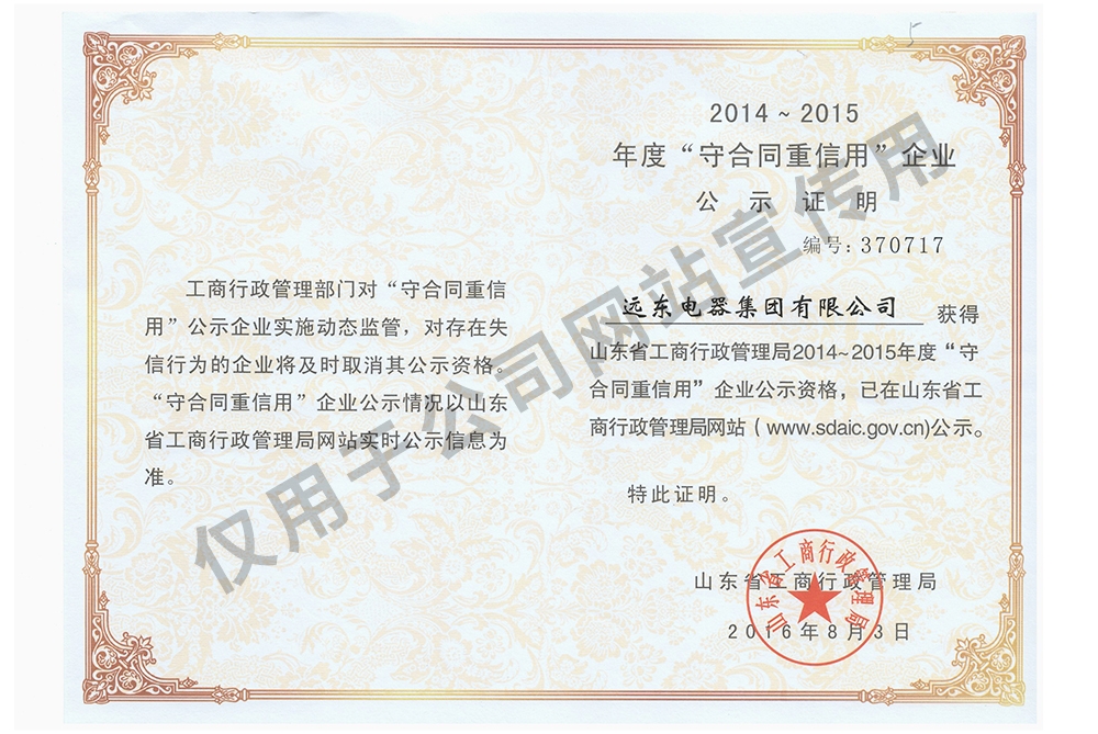 被山東省工商行政管理局授予“山東省守合同重信用企業”; | |
