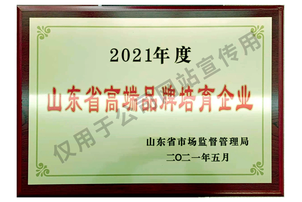 2021年 | 被山東省市場監督管理局授予“山東省高端品牌培育企業”; |